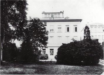 Keywords: Bonn Villa Wutzer Gartenfront.jpg Villa Wutzer zum Zeitpunkt der Aufnahme Teil des Hotel Kley; erbaut 1834/35 1905 abgebrochen Coblenzerstraße 3 Bonn Gartenfront mit dem nördlichen Nebengebäude Archiv Dr Hanns Eller<br />Olga Sonntag Villen am Bonner Rheinufer 1819 “1914 Bonn 1998 ISBN 3-922832-21-0 Band 2 Katalog 1 S 36 before 1898 Photograph Schauer PD-old Coblenzerstraße 3 Bonn; 1835 “1905 Bonn in the 1890s |