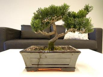 Keywords: bonsai tree plant nature foliage leaf green white blue close-up sofa