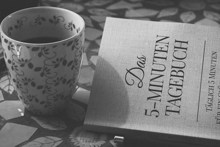 Keywords: book diary paper document notebook textbook write vintage cup mug tea drink