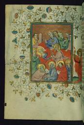 Keywords: devotional flemish christian book codex manuscript illumination miniature flanders devotion 15th century 15thcentury historiated initial historiatedinitial walters art museum waltersartmuseum notable binding notablebinding book of hours bookofhours indoor This Book of Hours was originally completed ca. 1430-1440 but has since been reconstructed, with several prayers and suffrages having been added to it over time. The miniatures were illuminated under the influence of the Master of Guillebert de Mets. Both the original and a subsequent owner are depicted in prayer on fols. 9v and 165v, respectively. The book was rebound by Joris de Gavere of Ghent ca. 1525-1535. The manuscript was rebacked in the modern period, but the sixteenth-century boards remain. Both contain stamped panels depicting angels playing instruments, and a band of fantastic animals depicted in profile. An inscription cites Joris de Gavere as the maker and asks the angels for their prayers. All manuscript images and descriptions were created and are provided through Preservation and Access grants awarded to the Walters Art Museum by the National Endowment for the Humanities, 2008-2015. Access a complete set of high-resolution archival images of this manuscript for free on The Digital Walters (www.thedigitalwalters.org/01_ACCESS_WALTERS_MANUSCRIPTS.html). For a digital “turning the pages” presentation of the manuscripts and downloadable PDFs, visit the Walters Art Museum’s Website (art.thewalters.org/browse/category/manuscript-and-rare-bo...). This Book of Hours was originally completed ca. 1430-1440 but has since been reconstructed, with several prayers and suffrages having been added to it over time. The miniatures were illuminated under the influence of the Master of Guillebert de Mets. Both the original and a subsequent owner are depicted in prayer on fols. 9v and 165v, respectively. The book was rebound by Joris de Gavere of Ghent ca. 1525-1535. The manuscript was rebacked in the modern period, but the sixteenth-century boards remain. Both contain stamped panels depicting angels playing instruments, and a band of fantastic animals depicted in profile. An inscription cites Joris de Gavere as the maker and asks the angels for their prayers. All manuscript images and descriptions were created and are provided through Preservation and Access grants awarded to the Walters Art Museum by the National Endowment for the Humanities, 2008-2015. Access a complete set of high-resolution archival images of this manuscript for free on The Digital Walters (www.thedigitalwalters.org/01_ACCESS_WALTERS_MANUSCRIPTS.html). For a digital “turning the pages” presentation of the manuscripts and downloadable PDFs, visit the Walters Art Museum’s Website (art.thewalters.org/browse/category/manuscript-and-rare-bo...). |
