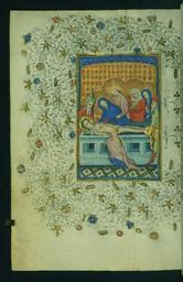 Keywords: devotional flemish christian book codex manuscript illumination miniature flanders devotion 15th century 15thcentury historiated initial historiatedinitial walters art museum waltersartmuseum notable binding notablebinding book of hours bookofhours indoor photo border This Book of Hours was originally completed ca. 1430-1440 but has since been reconstructed, with several prayers and suffrages having been added to it over time. The miniatures were illuminated under the influence of the Master of Guillebert de Mets. Both the original and a subsequent owner are depicted in prayer on fols. 9v and 165v, respectively. The book was rebound by Joris de Gavere of Ghent ca. 1525-1535. The manuscript was rebacked in the modern period, but the sixteenth-century boards remain. Both contain stamped panels depicting angels playing instruments, and a band of fantastic animals depicted in profile. An inscription cites Joris de Gavere as the maker and asks the angels for their prayers. All manuscript images and descriptions were created and are provided through Preservation and Access grants awarded to the Walters Art Museum by the National Endowment for the Humanities, 2008-2015. Access a complete set of high-resolution archival images of this manuscript for free on The Digital Walters (www.thedigitalwalters.org/01_ACCESS_WALTERS_MANUSCRIPTS.html). For a digital “turning the pages” presentation of the manuscripts and downloadable PDFs, visit the Walters Art Museum’s Website (art.thewalters.org/browse/category/manuscript-and-rare-bo...). This Book of Hours was originally completed ca. 1430-1440 but has since been reconstructed, with several prayers and suffrages having been added to it over time. The miniatures were illuminated under the influence of the Master of Guillebert de Mets. Both the original and a subsequent owner are depicted in prayer on fols. 9v and 165v, respectively. The book was rebound by Joris de Gavere of Ghent ca. 1525-1535. The manuscript was rebacked in the modern period, but the sixteenth-century boards remain. Both contain stamped panels depicting angels playing instruments, and a band of fantastic animals depicted in profile. An inscription cites Joris de Gavere as the maker and asks the angels for their prayers. All manuscript images and descriptions were created and are provided through Preservation and Access grants awarded to the Walters Art Museum by the National Endowment for the Humanities, 2008-2015. Access a complete set of high-resolution archival images of this manuscript for free on The Digital Walters (www.thedigitalwalters.org/01_ACCESS_WALTERS_MANUSCRIPTS.html). For a digital “turning the pages” presentation of the manuscripts and downloadable PDFs, visit the Walters Art Museum’s Website (art.thewalters.org/browse/category/manuscript-and-rare-bo...). |