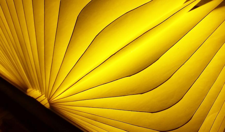 Keywords: book table lamp page lights calm relax knowledge arc yellow fan shaped