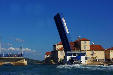 Keywords: boot bridge transit port croatia shipping lane sea ​​route passage channel high bridge bow wave photo tisno ship shipping road sea holiday