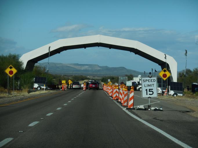 Keywords: border patrol check point sign united states military interstate 19 arizona police state surveillance immigration privacy authority government search