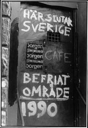 Keywords: Borgen, Malmö, 1990.jpg sv Dörren till det ockuperade huset på Ringgatan 7 i Malmö 1990 own Magnus C 1990 Borgen Malmö