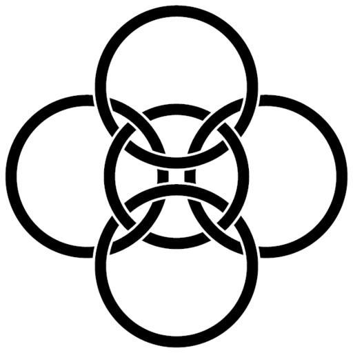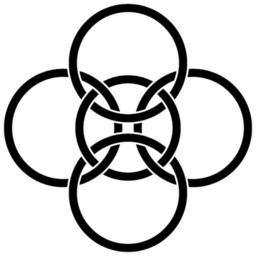 Keywords: Borromean-cross.png A Borromean cross which contains four Borromean rings configurations arranged in a cross shape This means that no two circles are directly interlinked and cutting the central loop frees the other four circles This could be interpreted as a Christian symbol since it combines the cross with the Borromean rings often used as a symbol of the Christian Trinity However a similar design not Borromeanly-linked is found as a Japanese mon in Handbook of Design and Motifs 1950 and may be occasionally used as a neo-pagan five worlds symbol For another image on the Borromean rings + cross theme see File Cross-Trinity-Borromean-interlinked svg For an indefinitely extended Borromean chain-mail pattern see Image Borromean-chainmail-tile png Generated by means of the following PostScript code <pre> 300 396 translate 12 5 setlinewidth /A 85 0 360 arc closepath stroke def 0 0 75 0 360 arc closepath stroke -100 0 A 100 0 A 1 setgray 18 setlinewidth 0 -100 A 0 100 A 0 setgray 12 5 setlinewidth 0 -100 A 0 100 A 0 0 75 23 5 44 arc 1 setgray 18 setlinewidth stroke 0 0 75 22 5 45 arc 0 setgray 12 5 setlinewidth stroke 0 0 75 -44 -23 5 arc 1 setgray 18 setlinewidth stroke 0 0 75 -45 -22 5 arc 0 setgray 12 5 setlinewidth stroke 0 0 75 136 155 5 arc 1 setgray 18 setlinewidth stroke 0 0 75 135 157 5 arc 0 setgray 12 5 setlinewidth stroke 0 0 75 -156 5 -136 arc 1 setgray 18 setlinewidth stroke 0 0 75 -157 5 -135 arc 0 setgray 12 5 setlinewidth stroke -100 0 85 38 5 59 arc 1 setgray 18 setlinewidth stroke -100 0 85 37 5 60 arc 0 setgray 12 5 setlinewidth stroke -100 0 85 -59 -38 5 arc 1 setgray 18 setlinewidth stroke -100 0 85 -60 -37 5 arc 0 setgray 12 5 setlinewidth stroke 100 0 85 121 141 5 arc 1 setgray 18 setlinewidth stroke 100 0 85 120 142 5 arc 0 setgray 12 5 setlinewidth stroke 100 0 85 -141 5 -121 arc 1 setgray 18 setlinewidth stroke 100 0 85 -142 5 -120 arc 0 setgray 12 5 setlinewidth stroke showpage EOF</pre> 2007 AnonMoos For other Trinity crosses see Image Cross-Bottony-Heraldry svg Image Triquetra-Cross png Image Celtic-Cross-Vodicka-decorative-triquetras-red svg and perhaps Image Cross-Flory-Heraldry svg Borromean-cross svg Knots and links on white background Borromean crosses Black line knots and links |
