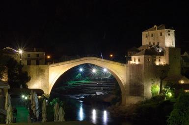 Keywords: bosnia and herzegovina herzegovina mostar old bridge rebuilt night