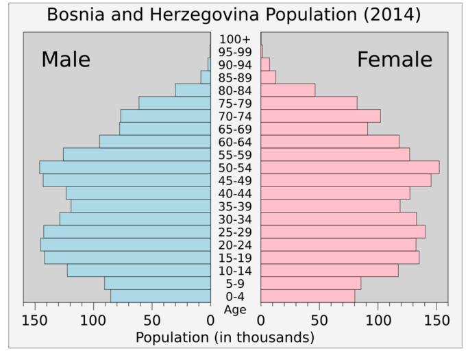 Keywords: Bosnia and Herzegovinapop.svg translate yes en Current population pyramid of Bosnia and Herzegovina 2014 from UN estimates World Population Prospects http //esa un org/unpd/wpp/Excel-Data/population htm The 2012 Revision 2014-08-06 own Delphi234 cc-zero Uploaded with UploadWizard Population pyramids of Bosnia and Herzegovina |