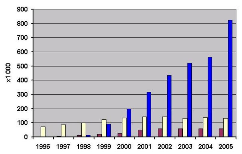 | Keywords: Botswana-phone.png Structure of the telecommunications market in Botswana Number of fixed lines mobile subscribers and internet users 1996-2005 Data source ITU yearbook Structure du marché des télécoms au Botswana 1996-2005 nombre de lignes fixes mobiles et internautes Source almanach de l'UIT 2006-10-31 own assumed Popo le Chien Economy of Botswana Economic statistics |