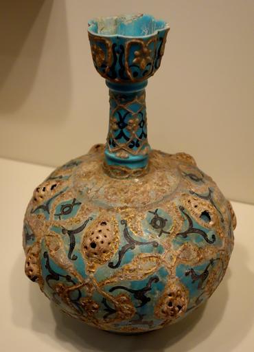 | Keywords: Bottle, Iran, Rayy, Seljuk period, 13th century AD, earthenware with pierced gilt bosses and black paint over turquoise glaze - Cincinnati Art Museum - DSC03993.JPG  en Exhibit in the Cincinnati Art Museum Cincinnati Ohio USA This artwork is in the public domain because the artist died more than 70 years ago Photography was permitted in the museum without restriction 2013-05-14 11 14 33 own Daderot cc-zero Uploaded with UploadWizard Seljuk pottery in the Cincinnati Art Museum Ceramics of Iran |