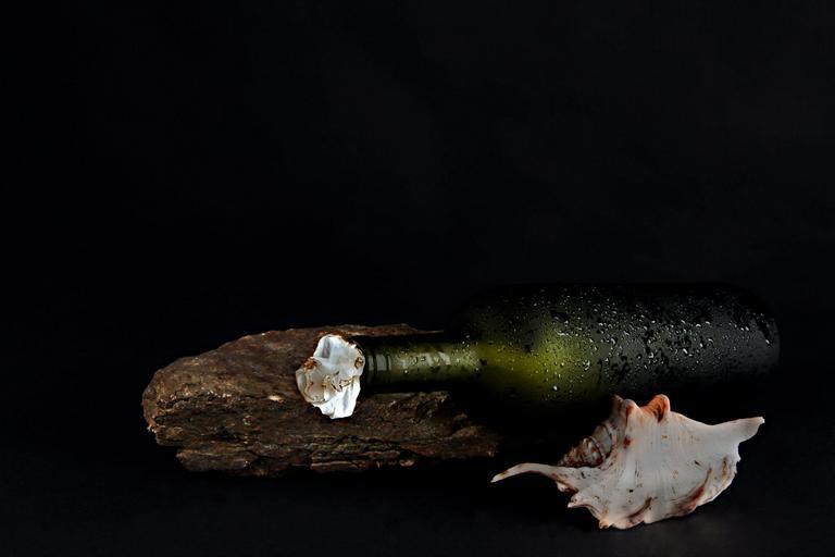 Keywords: bottle seashell still life photo background the bottle glass fine arts composition green simplicity studio