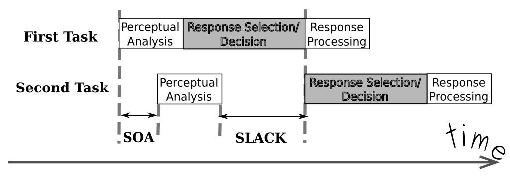 | Keywords: BottleneckInterefencePRP.svg en Representation of the dual task interference in the psychological refractory period The figure gives a representation of the delay of the second of two tasks when the interval intervening between the two is not long enough to permit an independent execution It is a visualization of the central bottleneck responsible of the PRP effect Own JoanBat 2009-05-16 http //nl wikipedia org/wiki/Bestand PRP png Central bottleneck Attention Psychological refractory period |