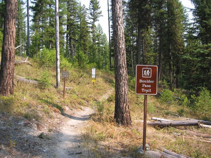 MAKE A MEME View Large Image The western terminus of the Boulder Pass trail, which begins near Kintla Lake and leads to Goat Haunt Ranger Station. A warning about possible encounters with bears on the trail is visible behind. Photo: David Restivo, NPS The western ...