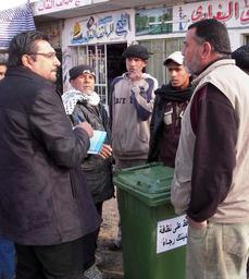 Keywords: Bountyhunters, Iraqi Security Forces kick start sanitation program in Sab al Bour DVIDS144631.jpg en The Sab al Bour City Surface Developer explains to a market owner his obligation while maintaining the government of Iraq issued trash can outside of his establishment in Sab al Bour northwest of Baghdad Jan 13 Soldiers from Troop B Bountyhunter 2nd Squadron 14th Cavalry Regiment Strykehorse 2nd Stryker Brigade Combat Team Warrior 25th Infantry Division Multi-National Division “ Baghdad along with Iraqi police from the Sab al Bour IP station assisted local sanitation workers with the distribution of trash cans along two of the busiest markets streets 2009-01-13 https //www dvidshub net/image/144631 144631 2009-01-15 11 48 JOINT SECURITY STATION SAB AL BOUR IQ PD-USGov 25th Infantry Division United States Images from DoD uploaded by Fæ |