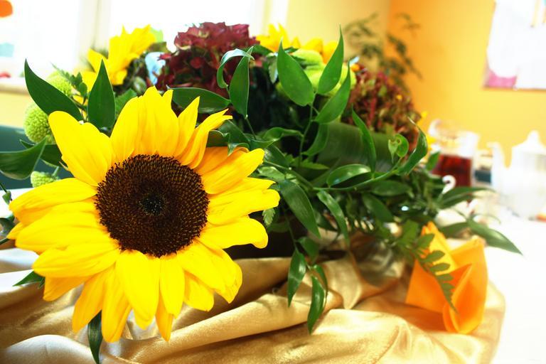 Keywords: bouquet flowers the ceremony decoration flower bouquet of flowers dining table plant composition tablecloth bunch of flowers beautiful event sunflower summer blooming