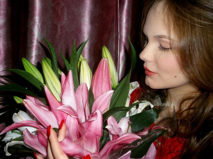 Keywords: bouquet girl woman beauty youth model photo flowers views girls beautiful lily