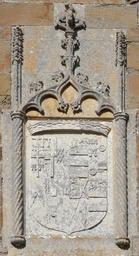Keywords: BourchierImpalingManners TawstockChurchDevon.JPG difference 3 Quarterly per fess indented argent and gules FitzWarin 4 Gules a fret or Audley 5 Argent three aspen leaves erect gules Cogan 6 Sable a chevron barry nebuly argent and gules Hankford 7 Argent two bars wavy sable Stapledon 8 Argent two bars gules each charged with three bezants Martin 9 Gules four fusils in fess ermine Dinham 10 Gules three pairs of arches argent Arches and his 2nd wife Eleanor Manners daughter of George Manners 11th Baron de Ros c 1470-1513 with 4 quarterings 1st 4th Or two bars azure a chief quarterly azure and gules; in the 1st and 4th quarters two fleurs-de-lis and in the 2nd and 3rd a lion passant guardant all or Manners 2nd quarterly of 4 1 Gules three water bougets argent de Ros 2 3 Gules three catherine wheels argent Espec for Walter Espec 4 Argent a fess between two bars gemeles gules Badlesmere for Giles de Badlesmere 2nd Baron Badlesmere 1314 “1338 as shown for Guncelin de Badlesmere on the Herald's Roll of Armshttp //briantimms fr/Rolls/heralds/heralds05 html also on The Camden Roll D189 St George's Roll E473 3rd quarterly 1st within a bordure the Arms of Plantagenet Thomas Holland 2nd Earl of Kent ; 2nd 3rd Argent a saltire engrailed gules Sir John Tiptoft 1st Baron Tiptoft husband of Joyce Charleton and father of Philippa Tiptoft wife of Thomas de Ros 9th Baron Ros d 1467 ; 4th Or a lion rampant gules Edward Charleton 5th Baron Charleton of Powys 1370-1421 husband of Alianore Holland own photo Lobsterthermidor <span class signature-talk >talk</span> 15 22 15 January 2014 UTC photo 2013 St Peter's Church Tawstock Espec arms Tiptoft arms Charleton arms Badlesmere arms Bourchier arms FitzWarin arms Audley arms Cogan arms Hankford arms Stapledon arms Dinham arms Arches arms Louvain arms De Ros arms Walter de Stapledon Earls of Bath |