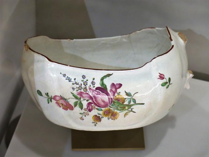 Keywords: Bourdalou (medieval Louvre).jpg en Bourdalou urinal chamber pot for women signed by Paul Hannong 1750-1800 faience from the workshops of Strasbourg Found during the excavations of the Louvre castle for the creation of the Pyramid and exhibited in the medieval Louvre Paris France fr Bourdalou pot de chambre urinaire pour dame signé Paul Hannong 1750-1800 faience de la manufacture de Strasbourg Trouvé dans les fouilles du château du Louvre pour la création de la Pyramide et exposées au Louvre médiéval Paris sf 2016-07-08 Tangopaso Bourdalous urinals Objects found during the excavations of the Louvre castle for the creation of the Pyramid and exhibited in the medieval Louvre Porcelain by Paul Hannong 1760s works in France Faience of France Palais du Louvre in 2016
