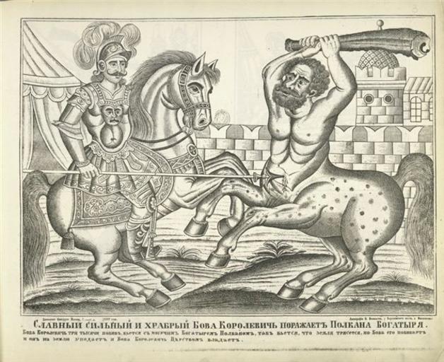 MAKE A MEME View Large Image Bova Korolevich.jpg ru Славный сильный и х аб ый богаты ь Бова Ко олевич по ажает Полкана богаты я en Bova Korolevich fighting Polkan a centaur-like creature Russian lubok ...