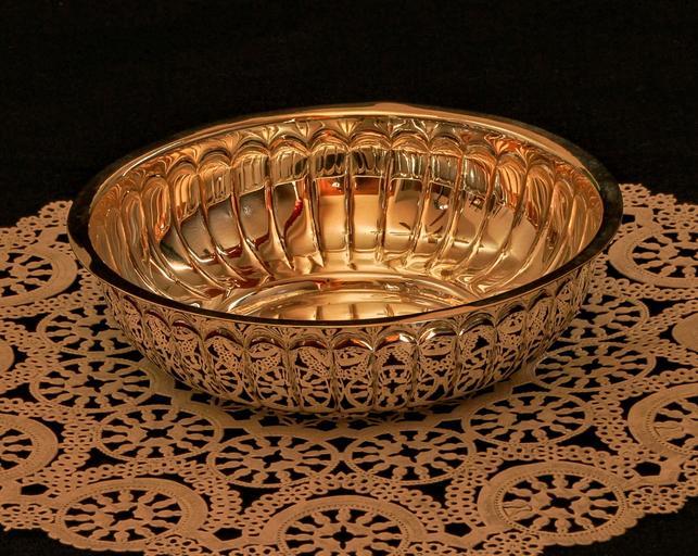 Keywords: bowl dish container silver gold vermeil doily