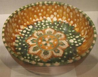 | Keywords: Bowl from China, Tang dynasty (618-906), earthenware with sancai glaze, HAA.JPG  en Bowl from China Tang dynasty 618-906 earthenware with sancai glaze Honolulu Academy of Arts own Hiart photo 2011 Ceramic bowls Chinese ceramics in the Honolulu Museum of Art Chinese earthenware Sancai ceramics of the Tang Dynasty Cc-zero |