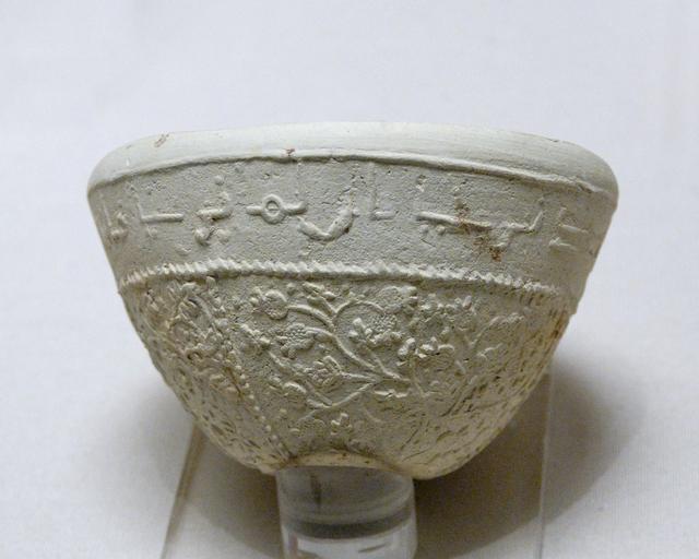 | Keywords: Bowl Louvre MAOS376.jpg Bowl with vines and pomegranate decoration and a verse in Arab script Bol à décor de pampres et de grenades avec un vers en écriture arabe century 7 - century 8 clay pottery ; decoration molded Institution Louvre room ID 82 object department islamic art 17405 object history credit line ProvenanceEvent excavation Jacques de Morgan Susa 1908 accession number Louvre number S 376 Marie-Lan Nguyen 2006 other versions Islamic ceramics from Susa in the Louvre Museum Pomegranates in art |
