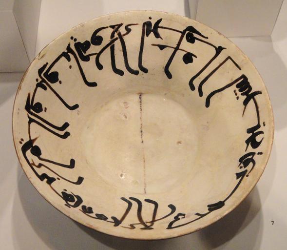 | Keywords: Bowl with Inscription, 10th century, Samanid period, Nishapur, Iran - Sackler Museum - DSC02456.JPG Exhibit in the Sackler Museum Harvard University Cambridge Massachusetts USA The museum permitted photography of this artwork without restriction This artwork is in the public domain because the artist died more than 70 years ago Daderot 2012-11-17 12 13 39 Daderot cc0 cc0 Near Eastern pottery in the Sackler Museum Samanid pottery Islamic ceramics from Nishapur | ||||