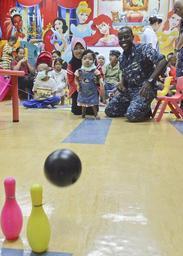 | Keywords: Bowling 130301-N-UE250-091.jpg  en Senior Chief Interior Communications Electrician Cedric Glover assigned to the submarine tender USS Frank Cable AS 40 bowls with a patient at the Likas Hospital's child cancer ward Frank Cable sailors volunteered while in port to entertain children of both the child cancer and blood transfusion wards reading playing games music and dancing U S Navy photo by Mass Communication Specialist 2nd Class Corey Hensley/Released 2013-03-01 Corey Hensley https //www dvidshub net/image/879361 130301-N-UE250-091 2013-03-04 22 51 KOTA KINABALU MY PD-USGov-Military-Navy USS Frank Cable AS-40 Images from DoD uploaded by Fæ |