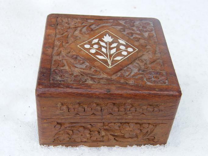 Keywords: box brown carved casket closed jewelry box