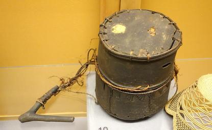 Keywords: Box for storing headgear, bark - Kuba - Royal Museum for Central Africa - DSC05938.JPG en Exhibit in the Royal Museum for Central Africa Tervuren Belgium This object is old enough so that it is in the public domain Photography was permitted in the museum without restriction 2013-10-13 05 02 21 own Daderot other versions cc-zero Splint boxes Kuba collection in the Royal Museum for Central Africa Uploaded with UploadWizard Hat boxes |