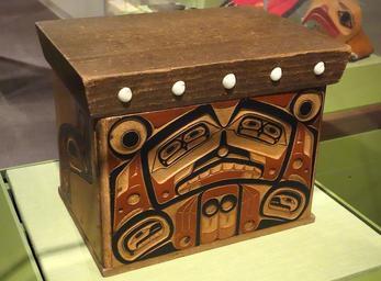 Keywords: Box, Tsimshian, early 1900s, cedar, shells - Glenbow Museum - DSC00875.JPG en Exhibit in the Glenbow Museum 130 9th Ave S E Calgary Alberta Canada This work is old enough so that it is in the public domain Photography was permitted in the museum without restriction 2013-09-21 12 24 37 own Daderot cc-zero Uploaded with UploadWizard Aboriginal peoples boxes in the Glenbow Museum Tsimshian boxes |