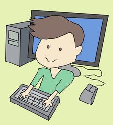 Keywords: boy cartoon computer desktop keyboard linux mac monitor mouse pc