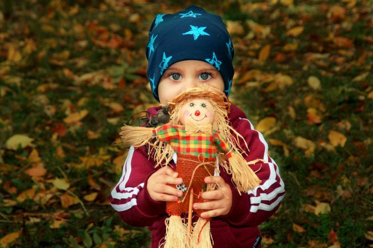 Keywords: boy child green eyes blue eyes scarecrow doll innocence beauty play portrait park red