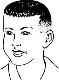 Keywords: boy face head portrait black and white smiling laughing bright eyes looking short hair hair cut