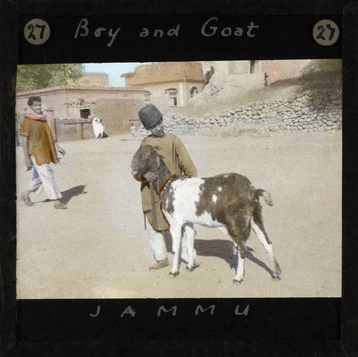 | Keywords: Boy and Goat, Jammu City, Jammu, ca.1875-ca.1940 (imp-cswc-GB-237-CSWC47-LS10-027).jpg en <br> Boy and Goat Jammu City Jammu ca 1875-ca 1940 Boy and Goat Photograph of a young boy with a goat There are red brick buildings in the background ; This belongs to a series of Church of Scotland Foreign Missions Committee lantern slides relating to Jammu City which is also known as the City of Temples A mission station occupied by Church of Scotland missionaries was founded here in the late 19th/early 20th century Jammu is also one of the three administrative divisions within Jammu and Kashmir the northernmost state in India Photographer Unknown Filename imp-cswc-GB-237-CSWC47-LS10-027 tif Coverage date 1875/1940 Part of collection International Mission Photography Archive ca 1860-ca 1960 Geographic subject region Jammu and Kashmir Type images Part of subcollection Photographs from the Centre for the Study of World Christianity University of Edinburgh U K ca 1900-ca 1940s Repository name Centre for the Study of World Christianity Archival file impaunpub_Volume7/1743 url Repository address The University of Edinburgh School of Divinity New College Mound Place Edinburgh EH1 2LX United Kingdom Geographic subject country India Format aacr2 1 lantern slide 8 x 8 cm Geographic subject continent Asia Rights Contact the repository for details Part of series In the Temple City of Jammu LS10 Repository email divinity-CSWC ed ac uk Subject lcsh Keyword Livestock; Children Date created 1875/1940 Publisher of the digital version University of Southern California Libraries Subject aat genre exterior views Format aat lantern slides Legacy record ID impa-m69262 Access conditions http //www ed ac uk/schools-departments/divinity/research/centres/world-christianity/collections-resources File GB 237 CSWC47/LS10/27 1875/1940 author http //digitallibrary usc edu/cdm/ref/collection/p15799coll123/id/64861 PD-old-70-1923 Magic lantern images Images from USC Digital Library uploaded by Fæ International Mission Photography Archive ca 1860-ca 1960 People of Jammu |