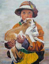 | Keywords: children young-boy youngboy goat holding two-young-goats twoyounggoats boy hat straw-hat strawhat baby-goats babygoats oilpainting on.canvas oncanvas hubertine-heijermans hubertineheijermans artistpainter woman.painter womanpainter outdoor 2012 With this big hat he looks older. With this big hat he looks older. |