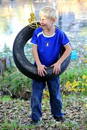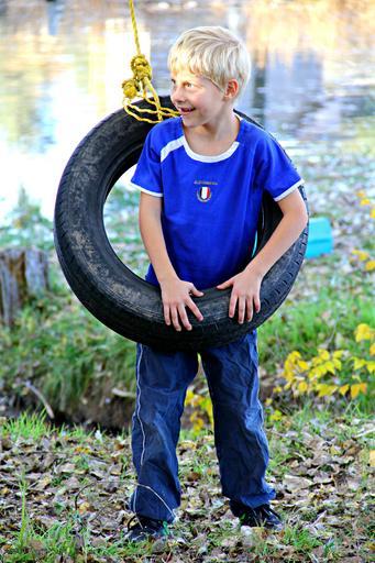 Keywords: boy playing happy smiling swinging tire swing child youth young childhood fun person happiness cheerful summer
