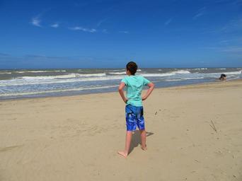 Keywords: boy sea beach sand wind child waves blue watch tough