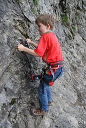Keywords: Boy with climbing harness.jpg en Boy climbing with harness at the Jubiläumssteig near Ellmauer Tor Kaisergebirge Tyrol Austria de Kind mit Klettergurt am Jubiläumssteig in der Nähe vom Ellmauer Tor am Wilden Kaiser in Tirol own Kuli 2010-08-17 47 558428 12 316661 region AT Via ferrata in Austria Kaisergebirge Children climbing cc-zero |