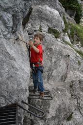 Keywords: Boy with climbing harness 2.jpg en Boy climbing with harness at the Jubiläumssteig near Ellmauer Tor Kaisergebirge Tyrol Austria de Kind mit Klettergurt am Jubiläumssteig in der Nähe vom Ellmauer Tor am Wilden Kaiser in Tirol own Kuli 2010-08-17 47 558428 12 316661 region AT Via ferrata in Austria Kaisergebirge cc-zero |