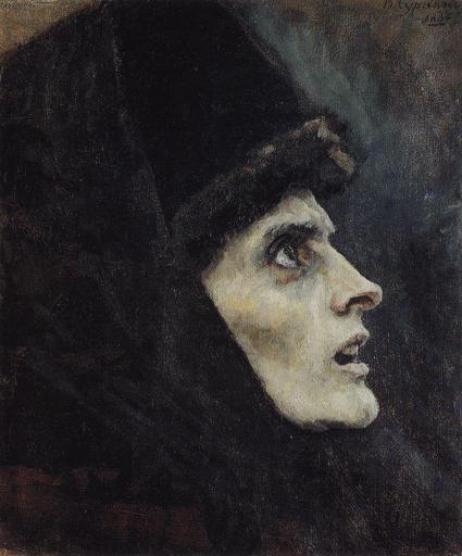 | Keywords: Boyaryna Morozova by V.Surikov - sketch 01a.jpg Голова боя ыни о озовой Этюд для ка тины Боя ыня о озова http //artsurikov ru/eskiz/5 php s 1880 Creator Wassilij Iwanowitsch Surikow Boyaryna Morozova Surikov Files uploaded by Shakko from various sources PD-old |
