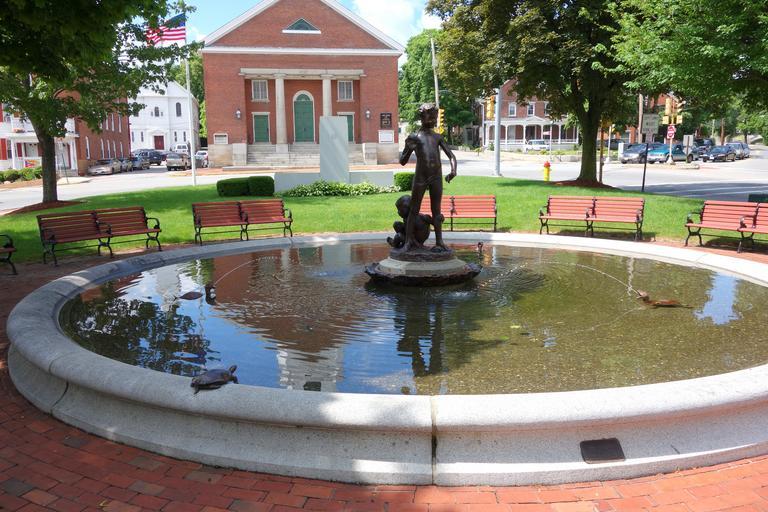 | Keywords: Boys and Turtles - Fitchburg, Massachusetts - DSC08571.JPG  In the center of a large granite basin stands a circular bronze sculpture depicting two nude boys One boy stands and the other crouches behind him Water sprays on the boys from the mouths of three large turtles located in the fountain basin Cire-perdue cast Brussels The fountain was a gift and presented to the City of Fitchburg on June 18 1889 by Rodney Wallace Henry A Willis and James Phillips Jr The fountain was restored in 1989 This artwork is in the public domain because it was first published before 1923 2013-06-14 14 39 43 own Daderot PD-1923 cc-zero Uploaded with UploadWizard Boys and Turtles Fitchburg Massachusetts |