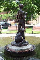 | Keywords: Boys and Turtles, rear view - Fitchburg, Massachusetts - DSC08576.JPG  In the center of a large granite basin stands a circular bronze sculpture depicting two nude boys One boy stands and the other crouches behind him Water sprays on the boys from the mouths of three large turtles located in the fountain basin Cire-perdue cast Brussels The fountain was a gift and presented to the City of Fitchburg on June 18 1889 by Rodney Wallace Henry A Willis and James Phillips Jr The fountain was restored in 1989 This artwork is in the public domain because it was first published before 1923 2013-06-14 14 40 31 own Daderot PD-1923 cc-zero Boys and Turtles Fitchburg Massachusetts Uploaded with UploadWizard |