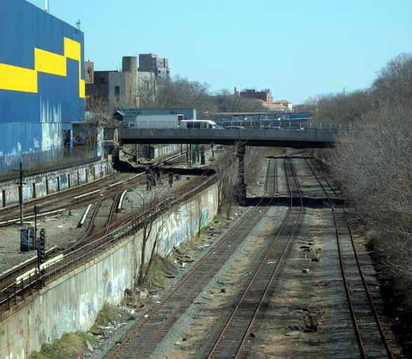 | Keywords: BR LIRR E fr 5 Av jeh.JPG en Looking east from 5th Avenue overpass into trench containing LIRR right and BMT left Own Jim henderson 2010-03-21 40 38 12 9 N 74 1 7 5 W alt 0_source exif_heading EbS cc-zero Bay Ridge Branch Long Island Rail Road BMT Sea Beach Line |