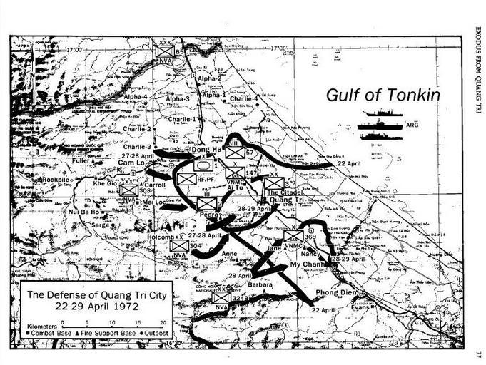 Keywords: BR, Vietnam, 1972, Easter Counter-Offensive, file 006.jpg en wyswyg Holding Continued bad weather precluded the use of VNAF or U S tactical air power The month's first two weeks also witnessed the arrival of III Marine Amphibious Force units responding to direction from Seventh Fleet On 14 April more air observers Available naval gunfire support now included 27 destroyers 2 light cruisers and a heavy cruiser Despite reliance on armor and motorized forces the North Vietnamese Army's infantry displayed a greater degree of crosscountry mobility than their opponents After more than two weeks of rain and dense cloud cover the weather broke allowing a massive air effort B-52 Arc Light strikes as well as hundreds of tactical air strikes in support of ARVN gtround forces On 18 April at 1830 the 304th NVA Division struck all along the western front moving toward Quang Tri City desperate ground forces naval gunfire along with diverted B-52 and tactical air strikes stopped the NVA forces While the ARVN defenders held the Dong Ha positions the concentration of the battle had shifted to the western approaches For the first time AT-3 Sagger Wire-guided antitank missiles were used against M48 tank crews 34 Collapse On 1 May General Giai decided that further defense of Quang Tri City would be fruitless No orderly withdrawal plan was promulagated destroyed the last traces of cohesion among the ARVN troops A frightened mob poured out as a tidal wave onto Highway 1 and fled southward toward Hue The NVA attack on this road by artillery and infantry weapons earned Highway 1 the title Highway of Horror for the estimated 2 000 civilian and military dead left along a three-quarters-of-a-mile stretch Only six tanks remained of the 42 that had arrived at Dong Ha on Easter Sunday FAC could not see the targets Chung did not care so long as the air support continued Six B-52s dropped their bomb loads just on the other side of the river a disheveled Colonel Chumg got out of his collapsed bunker and said with a smile That was very good Do it again On 1 May ready forces went on two-hour standby for evacuation operations in support of FRAC withdrew from Quang Tri City 35 https //en wikipedia org/w/index php title USS_Blue_Ridge_ LCC-19 oldid 611915045 2013-12-03 13 57 30 http //www marines mil/Portals/59/Publications/U S 20Marines 20in 20Vietnam 20The 20war 20that 20would 20not 20end 201971-1973 20PCN 2019000311200_1 pdf U S MARINES IN VIETNAM THE WAR THAT WOULD NOT END 1971-1973 PD-USGov USS Blue Ridge LCC-19 Uploaded with UploadWizard |