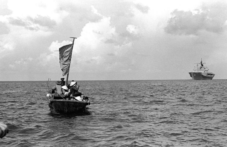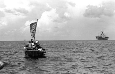 | Keywords: BR, Vietnam, 1982, Boat People (1979-1984), file 01.jpg en A 35 foot fishing boat approaches the amphibious command ship USS BLUE RIDGE LCC 19 The BLUE RIDGE rescued 35 refugeees 350 miles northeast of Cam Ranh Bay Vietnam after they had spend eight days at sea in the boat May 15 1984 DN-SN-84-09734 PH1 James Franzen USN PD-USGov PD-USN Uploaded with UploadWizard USS Blue Ridge LCC-19 | ||||