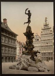 Keywords: Brabo Monument, Antwerp, Belgium WDL4148.png Artwork ru Памятник Б або Антве пен Бельгия fr Monument Brabo Anvers Belgique en Brabo Monument Antwerp Belgium zh 比利时安特卫普布拉博纪念碑 pt Monumento Brabo Antuérpia Bélgica ar نصب برابو التذكاري، أنتويرب، بلجيكا ru Данный цветной фотоснимок памятника Б або в Антве пене относится к азделу Виды а хитекту ных и иных памятных мест Бельгии каталога выпущенного Дет ойт Паблишинг Кампани 1905 г Посвященный легенда ному ге ою Сильвиусу Б або этот памятник был пост оен по п оекту Джефа Ламбо 1852-1908 гг на площади Г анд-Плас в Антве пене В издании Бедеке а Бельгия и Голландия включая Великое Ге цогство Люксембу г 1905 г Б або описывается как мифический ге ой кото ый победил и от убил уку великана Антигона Великан взимал высокую плату со всех судов входивших в по т еки Шельды и беспощадно от убал уки выб асывая их в еку всем капитанам судов отказывающихся платить дань Считается что именно эта легенда объясняет необычное название Антве пена от фламандских слов ант ука и ве пен б осать <br>Памятники и мемо иалы; Площади; Статуи fr Cette impression photochrome du Monument Brabo à Anvers fait partie des Vues d'Architecture et d'autres Sites en Belgique du catalogue de la Detroit Publishing Company 1905 Dédié au héros légendaire Salvius Brabo le monument a été conçu par Jef Lambeaux 1852 1908 et est situé sur la Grand-Place d'Anvers Comme décrit dans l'ouvrage de Baedeker <em>La Belgique et la Hollande y compris le Grand-Duché de Luxembourg</em> 1905 Brabo était un héros mythique qui vainquit le géant Antigone et lui coupa la main Le géant faisait payer un lourd tribut aux navires entrant dans l'Escaut et coupait impitoyablement pour la jeter dans le fleuve la main de tout capitaine qui refusait de payer Cette légende est racontée pour expliquer le nom inhabituel d'Anvers qui est un composé des mots flamand main <em>ant</em> et lancer <em>werpen</em> <br>Monuments et mémoriaux; Places; Statues en This photochrome print of the Brabo Monument in Antwerp is part of Views of Architecture and Other Sites in Belgium from the catalog of the Detroit Publishing Company 1905 Dedicated to the legendary hero Salvius Brabo the monument was designed by Jef Lambeaux 1852 1908 and is located on the Grand Place in Antwerp As described in Baedeker s <em>Belgium and Holland including the Grand-Duchy of Luxembourg</em> 1905 Brabo was a mythical hero who defeated and cut off the hand of the giant Antigonus The giant used to exact a heavy toll from vessels entering the Scheldt and ruthlessly cut off and threw into the river a hand of every shipmaster who refused to pay This legend is said to explain Antwerp's unusual name which is a compound of the Flemish words for hand <em>ant</em> and to throw <em>werpen</em> <br>Monuments and memorials; Plazas; Statues zh 这张安特卫普布拉博纪念碑的彩色照片是底特律出版公司 1905 书目中 比利时建筑和其他遗 风光 的 个部分 这座纪念碑是为了纪念传奇英雄西尔维乌斯·布拉博,由 夫·拉姆博斯 1852 1908 设计,位于安特卫普的大广 上 如 德克尔的 比利时 荷兰和卢森堡大公国旅行指南 1905 中 描述,布拉博是 位打败了巨人安蒂冈努斯并割下它的手掌的神 英雄 巨人向进入斯凯尔特河的船舶榨取很重的 行税,对于拒 缴税的船主,会被他残忍 割下 只手并扔进河中 据说这 传奇故事可用 解释安特卫普 比寻常的名称: 佛兰德语中,安特卫普 Antwerp 是 个复合词,ant意为 手 , werpen意为 扔 <br>纪念碑和纪念馆; 广 ; 雕像 pt Esta impressão fotocrômica do Monumento Brabo em Antuérpia faz parte de Vistas de Arquitetura e de Outros Locais da Bélgica do catálogo da Detroit Publishing Company 1905 Dedicado ao lendário herói Sálvio Brabo o monumento foi projetado por Jef Lambeaux 1852-1908 e está localizado na Grand Place em Antuérpia Conforme descrito em <em>Bélgica e Holanda incluindo o Grão-Ducado de Luxemburgo</em> 1905 de Baedeker Brabo era um herói mítico que venceu e cortou a mão do gigante Antígono O gigante costumava cobrar um imposto alto dos navios que entravam no rio Escalda e impiedosamente cortava e jogava no rio a mão dos comandantes que se recusassem a pagar Esta lenda é contada para explicar o nome incomum de Antuérpia que é um composto das palavras flamengas mão <em>ant</em> e jogar werpen <br>Monumentos e memoriais; Praças; Estátuas ar هذه الطبعة الفوتوكرومية لنصب برابو التذكاري في مدينة أنتويرب هي جزء من مَشاهد فن العمارة ومواقع أخرى في بلجيكا في كتالوج شركة ديترويت للنشر 1905 وقد صمم جيف لامبوكس 1852 1908 هذا النصب التذكاري تمجيدًا للبطل الأسطوري سالفيوس برابو، وهو يقع في ساحة جراند بلاس بمدينة أنتويرب وفي كتاب باديكر عن <em>بلجيا وهولندا بما في ذلك دوقية لوكسمبورغ العظمى</em> 1905 ، وُصف برابو بأنه كان بطلاً خرافيًّا هزم العملاق أنتيغونس وقطع يده كان هذا العملاق يفر
