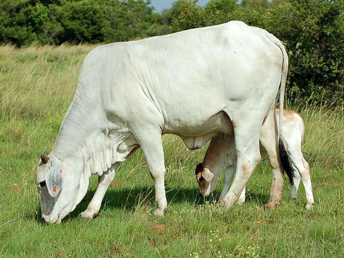| Keywords: Brahman cow & calf.jpg en The 3 year old Brahman cow named Kolenki with her bull calf named Portugesie born 3 days before on Sunday 13 December 2009 on the farm Rocky Ridge in the district Potchefstroom North West Province South Africa She hid him in the bush for two days before she came to introduce him This is her first calf she will hopefully have another 10 calves one each year they are pregnant for 9 months He's not eating the grass he drinks milk he's just mimicking his mother You might make out the mark DCS burnt on her buttock as required by law The D is turned right and the C is turned left Every farmer has his own burn mark registered with the Department of Agriculture In her ear is a plastic ear tag the number is not visible it's on the inside She weighs 500 kg af Die 3 jaar oud Brahman koei Kolenki met haar 3 dae oud bulkalfie Portugesie op die plaas Rocky Ridge distrik Potchefstroom Noord-Wes Provinsie Suid-Afrika Sy't hom weggesteek in die bos vir 2 dae voor sy hom kom bekend stel het Dis haar eerste kalf sy sal hopenlik nog so 10 kallers kry een elke jaar hulle's 9 maande dragtig Hy eet nie regtig die gras nie hy drink melk hy boots net sy ma na U kan dalk die brandmerk DCS op haar boud sien soos deur die wet vereis Die D is regs gedraai en die C is links gedraai Elke boer het sy eie brandmerk geregistreer by die Departement van Landbou In haar oor is 'n plastiek etiket die nommer is nie sigbaar nie dis aan die binnekant Sy weeg 500 kg own Beesboertjie 2009-12-15 Brahman cattle Grazing cattle Calves with their mothers Cattle in South Africa |