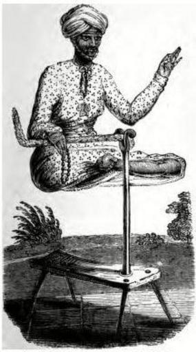 | Keywords: Brahmin aerial suspension ca 1830.jpg Lithograph or engraving of a Brahmin performing the aerial suspension illusion in India around 1830 https //ia700408 us archive org/BookReader/BookReaderImages php zip /10/items/unmaskingrobert00houdgoog/unmaskingrobert00houdgoog_jp2 zip file unmaskingrobert00houdgoog_jp2/unmaskingrobert00houdgoog_0255 jp2 scale 8 rotate 0 Alternative source Gutenberg collection http //www gutenberg org/files/42723/42723-h/images/illpg_231_lg jpg 1908 anonymous from book Houdini Harry 1908 The Unmasking of Robert-Houdin New York Publishers Printing Co pp 230 “232 PD-old-70-1923 Illusionists from India India in the 1830s Aerial suspension illusion |