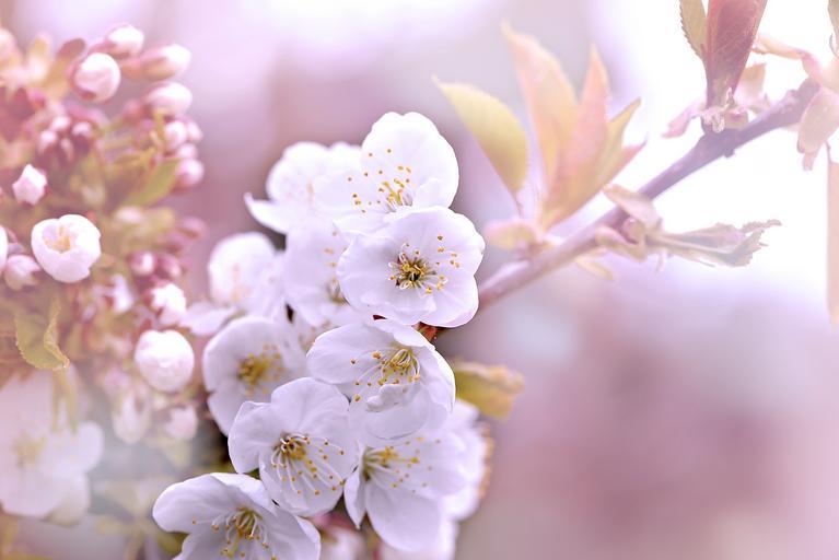 Keywords: branch cherry flowers white spring cherry blossom nature close